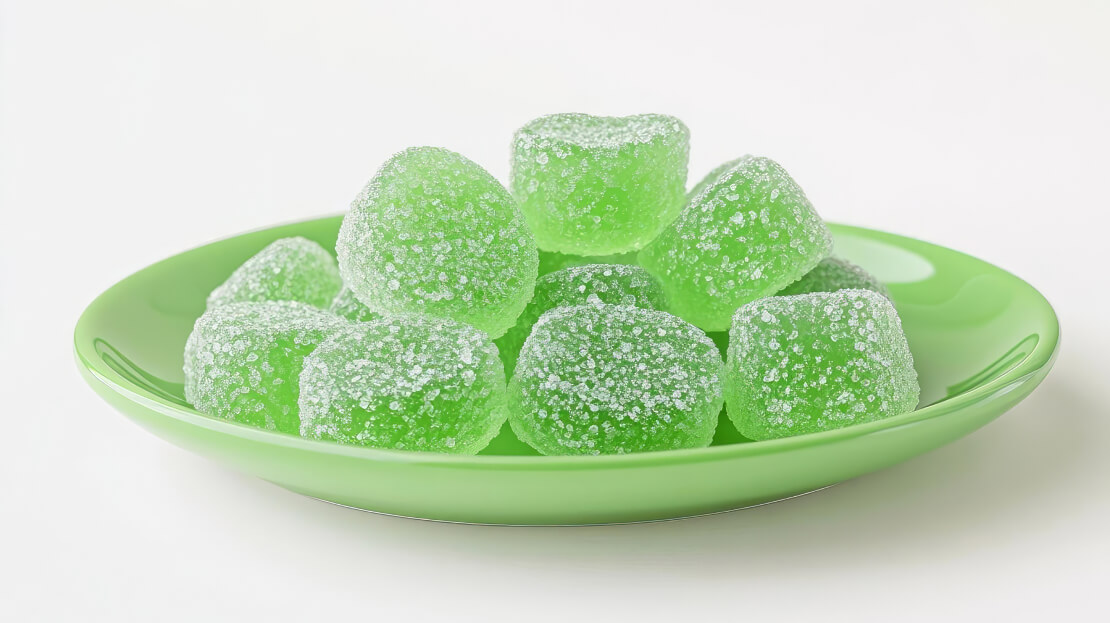 October 4, 2025 Fresh, vibrant green gummies carefully placed on a plate to deliver taste and wellness.